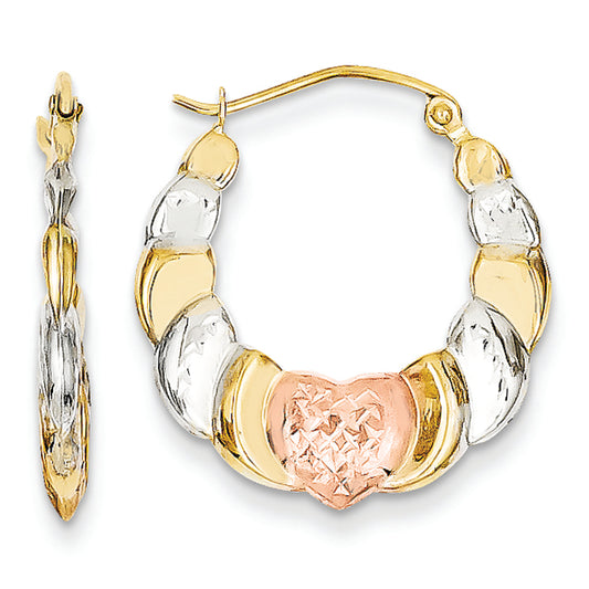14K Gold & White and Rose Rhodium Scalloped Heart Hoop Earrings