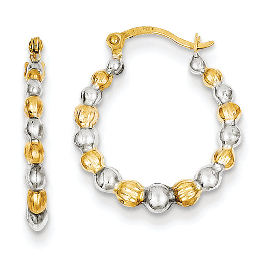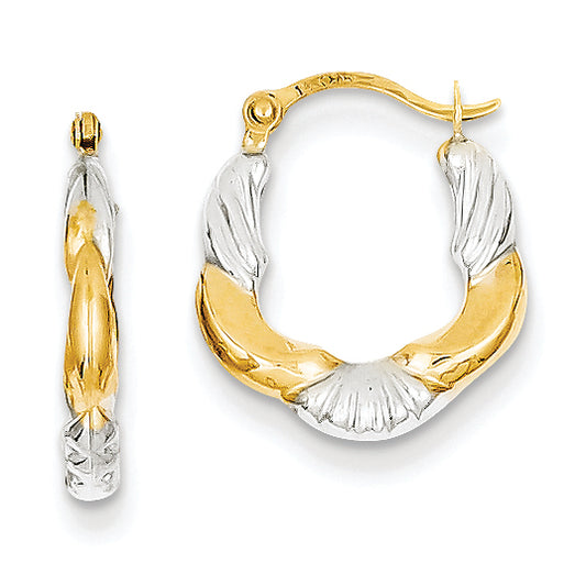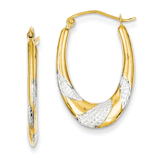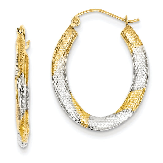14K Gold & Rhodium Textured Hollow Oval Hoop Earrings
