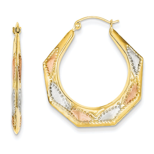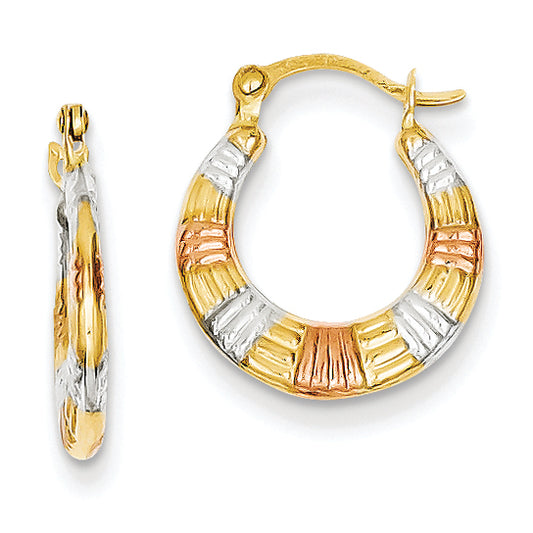14K Gold & White and Rose Rhodium Hollow Textured Hoop Earrings
