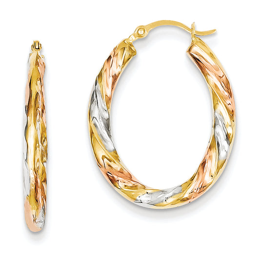 14K Gold & White & Rose Rhodium Oval Hollow Scallop Hoop Earrings