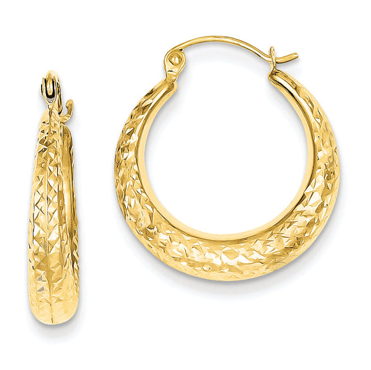 14K Gold Diamond Cut Hollow Hoop Earrings