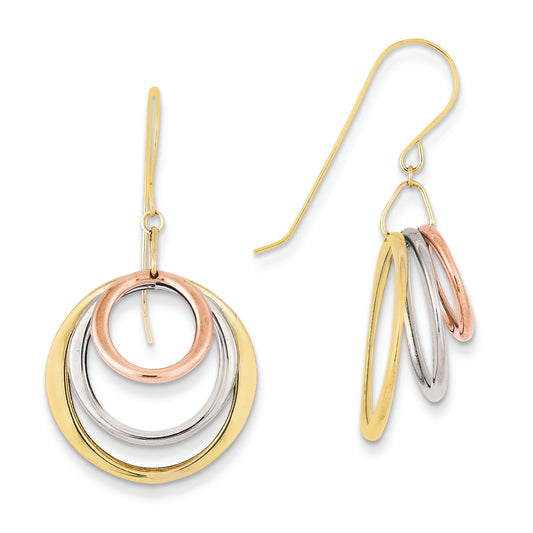 14K Gold Tri-color Circle Dangle Shepherd Hook Earrings