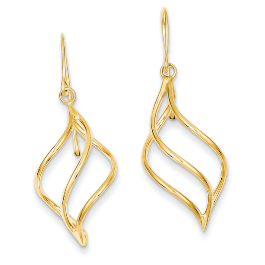 14K Gold Polished and Textured Twisted Dangle Earrings