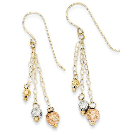 14K Gold Tri-color Strands with Diamond Cut Bead