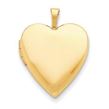 Treat yourself to the luxury of brilliant gold that will never go out of style. This exquisite 14K Gold 20mm Plain Polished Heart Locket is made with expert craftsmanship and is perfect for daily use. Product image may be slightly enlarged to show detail.