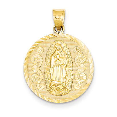14K Gold Diamond Cut Round Guadalupe Medal Pendant