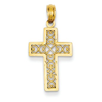 Treat yourself to the luxury of brilliant gold that will never go out of style. This exquisite 14K Gold Small Filigree Cross Pendant is made with expert craftsmanship and is perfect for daily use. Product image may be slightly enlarged to show detail.
