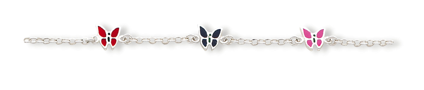 Sterling Silver Enamal Butterfly Childs Bracelet 6 Inches