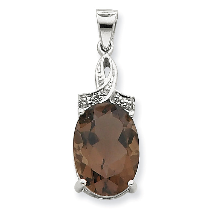 Sterling Silver Rhodium Smokey Quartz & Diamond Pendant